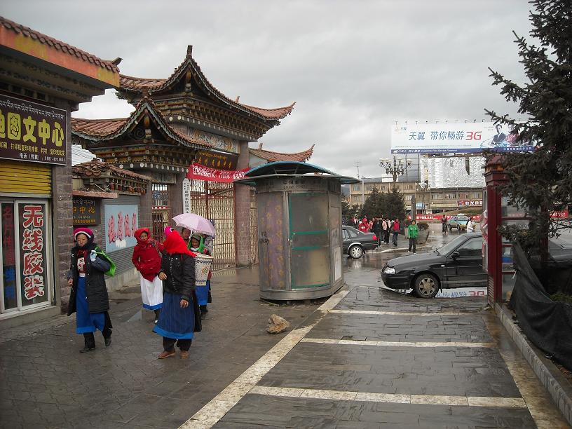 Tämä rakennuksen tarkoitus jäi auki. Se sijaitsi keskeisellä paikalla kaupungissa ja sen edessä oli pitkä avoin alue. Mietittiin, että se voisi olla vanha "kaupungintalo", ajalta jolloin tiibettiläiset munkit hallitsivat tällä alueella, Shangrilan pääväestöryhmä on edelleen tiibettiläiset. Nyt rakennus vaikutti melko autiolta. Pihalla paikalliset tanssivat joitain perinnetansseja, joiden askelkuviot näyttivät olevan hyvin perillä ikään ja sukupuoleen katsomatta, mukavan lämmintä menoa.