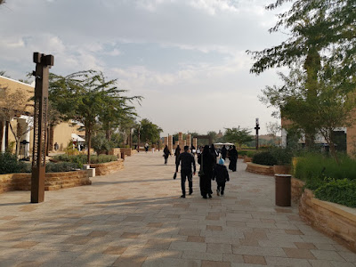 Lipunmyyntikojua täällä ei ole, vaan 100 rialin lippu ostetaan netistä. Tuon lipun arvo hyvitetään täysimääräisesti alueen hienoissa ravintoloissa. Alue on saudien suosiossa, joten pöytävarausta suositellaan. Minulla sellaista ei luonnollisesti ollut.